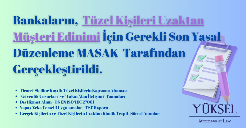 Konuya ilişkin 01.06.2023 tarihi itibariyle bankaların tüzel kişileri uzaktan kimlik tespiti ile müşteri edinebileceklerine ilişkin duyurular paylaşıldıysa da Düzenleme’ye olan ihtiyacı 25.05.2023 tarihli yazımızda paylaşmıştık.